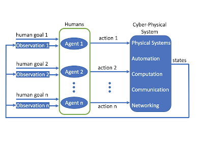 Predicting the outcomes of cyber-physical systems with multiple human interactions is a challenging problem. We address this problem by exploiting a modeling framework where reinforcement learning (RL) and game theory (GT) is used together. In this framework, GT is used to model strategic decision making of humans and RL is used to model time-extended (multi-move) decisions. The most attractive feature of the method is proposing a computationally feasible approach to simultaneously model multiple humans as decision-makers, instead of determining the decision dynamics of the intelligent agent of interest and forcing the others to obey certain kinematic and dynamic constraints imposed by the environment.