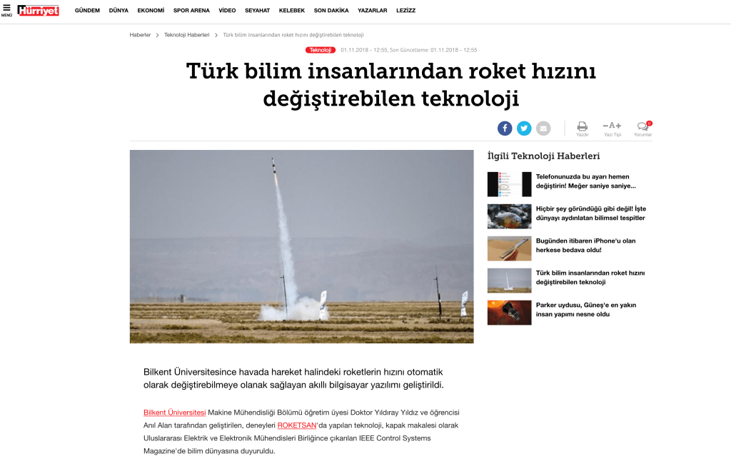 Our paper, “Gas Generator Pressure Control in Throttleable Ducted Rockets: A Classical and Adaptive Control Approach” has been accepted for presentation and publication in 51st AIAA/SAE/ASEE Joint Propulsion Conference to be held in Orlando, Florida, the USA.